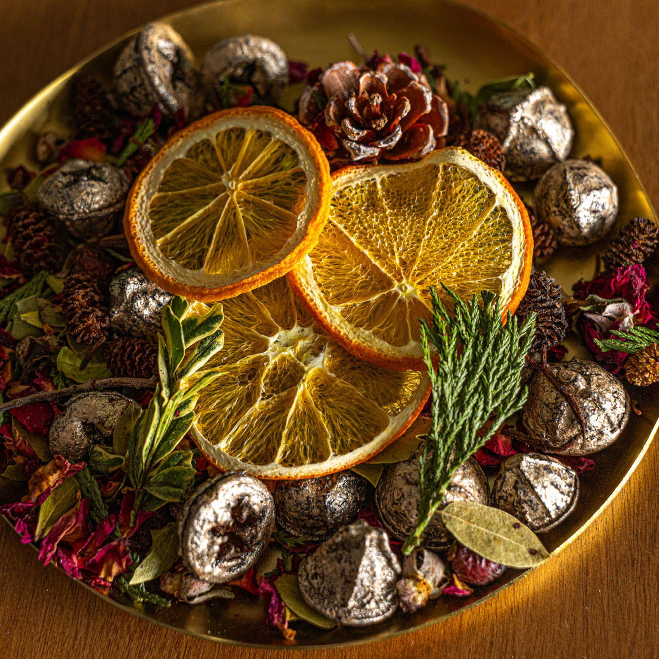 • Citrus garlands and holiday styling